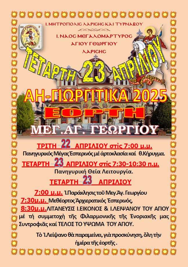 ΠΡΟΓΡΑΜΜΑ ΕΟΡΤΗΣ ΑΓΙΟΥ ΓΕΩΡΓΙΟΥ 2025