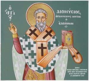 Ὡς διδάσκαλος καὶ ἐλεήμων, κατεκόσμησας τὴν Ἐκκλησίαν, καὶ τῆς Λαρίσης τὴν πόλιν ἐποίμανας ἐν διδαχαῖς καὶ ἀγάπῃ δωρούμενος τοῖς ἐνδεέσι τὰ δῶρα τὰ πλούσια. Κτίτωρ ἅγιε τῆς Μονῆς Ἀναπαυσᾶ, Διονύσιε, Χριστὸν τὸν Θεὸν ἱκέτευε, δωρήσασθαι εἰρήνην ταῖς ψυχαῖς ἡμῶν.